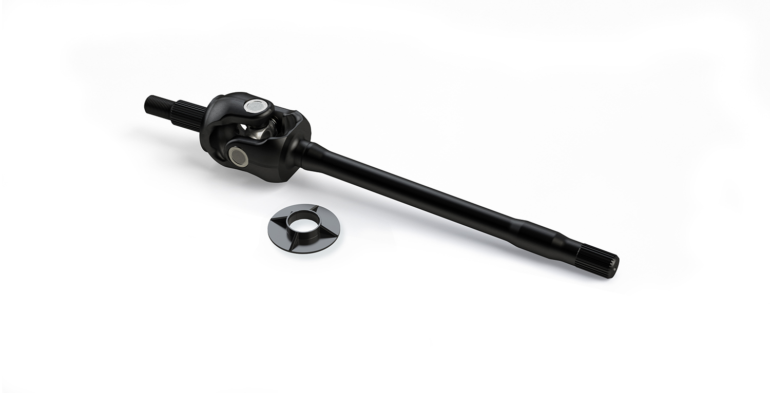 Replace your weak stock front axle shafts with a set of heavy-duty TeraFlex Axle Shafts! Comes assembled with our 32-spline Front Outer Stub Shaft and Spicer 1350-Series (Rubicon) U-Joint.