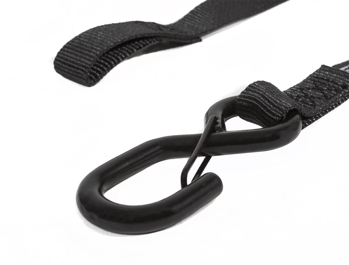Each Ratchet strap also includes a built-in tie-up that holds any excess strap and prevents it from flapping in the wind. Sold as a Pair. Rated at 3000lbs MRC, 1000lbs SWL.