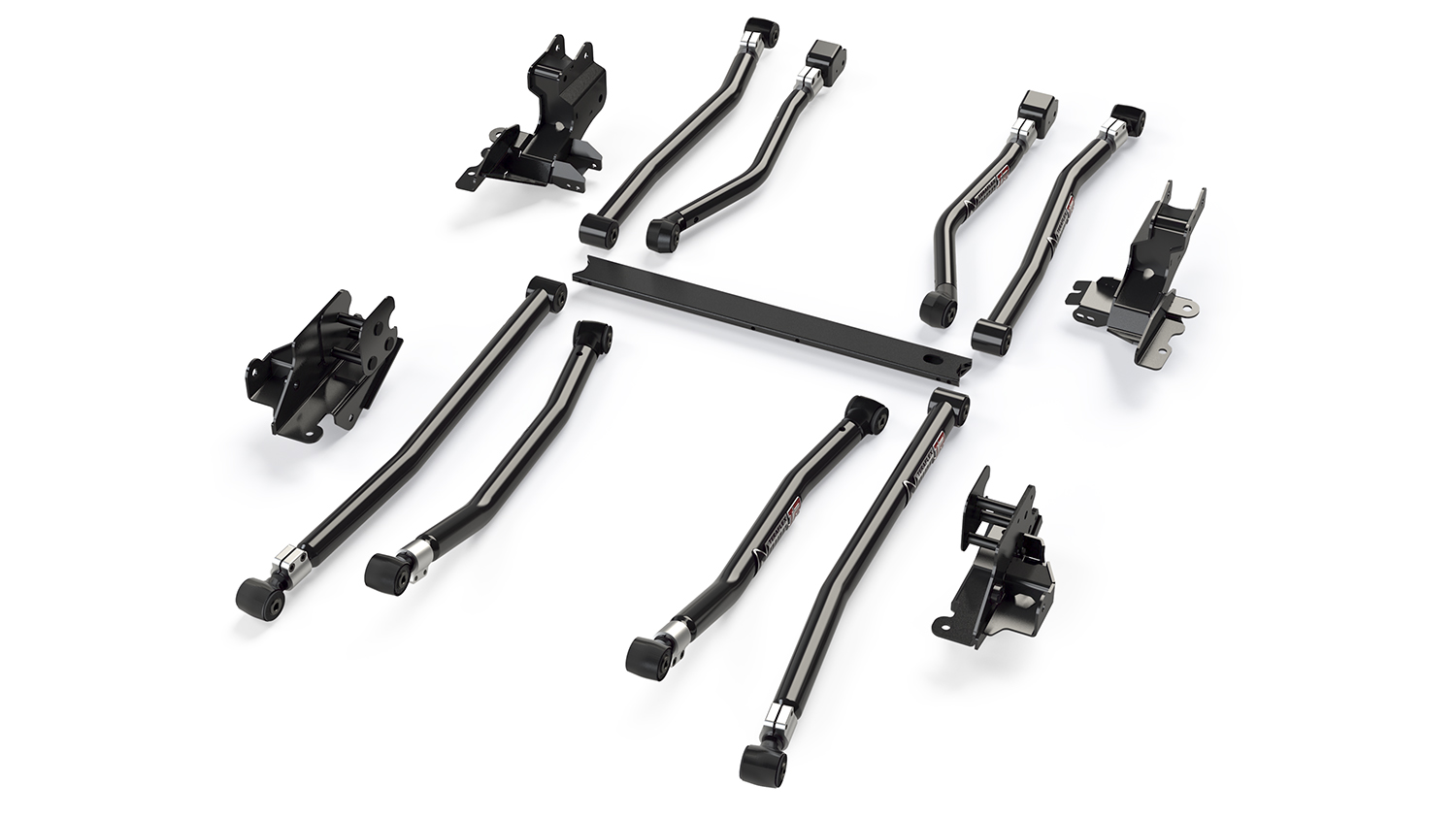 CAD-engineered TeraFlex JL: Long Arm Brackets are designed for maximum strength. By streamlining the frame-end mounting points, we were able to incorporate both upper and lower mounts in each bracket thus simplifying installation while maintaining a factory appearance. Front Long Arm Suspension Crossmember provides additional strength. Can be added to any existing suspension lift.