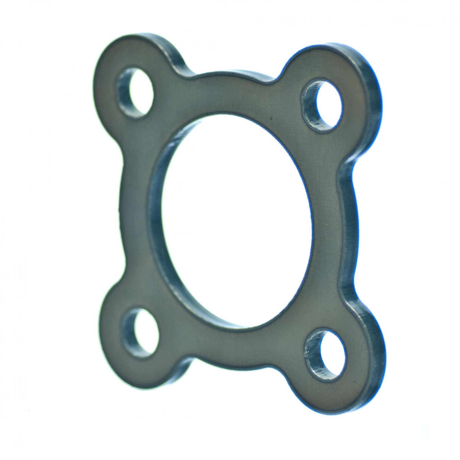 The 4 bolt flange can be used for many things. The primary use is the make a section of tube removable. The flanges are also used for connecting tube through a firewall ot other sheetmetal. The Motobilt 4 bolt tube flange is CNC laser cut from 3/16 inch high strength steel plate. The bolt holes are designed to be used with 3/8 inch bolts.