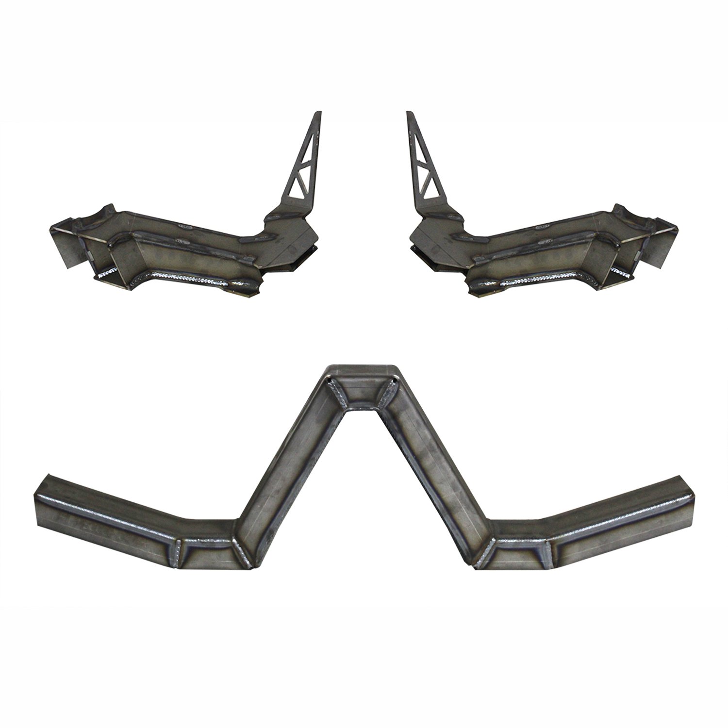 Parts are shipped as fully welded sub-assemblies. Parts are shipped as raw steel. We also offer a full kit, including these front brackets and transmission crossmember, the a heavy-duty 1/4 Inch steel skid plate, rear crossmember and rear link brackets.