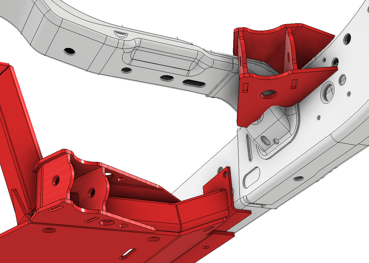 All front brackets are located using factory frame hole locations for ease of installation. The rear brackets key into the new rear cross member and are scribed to fit perfectly to the inside of the factory frame. All brackets require welding to the factory frame.
