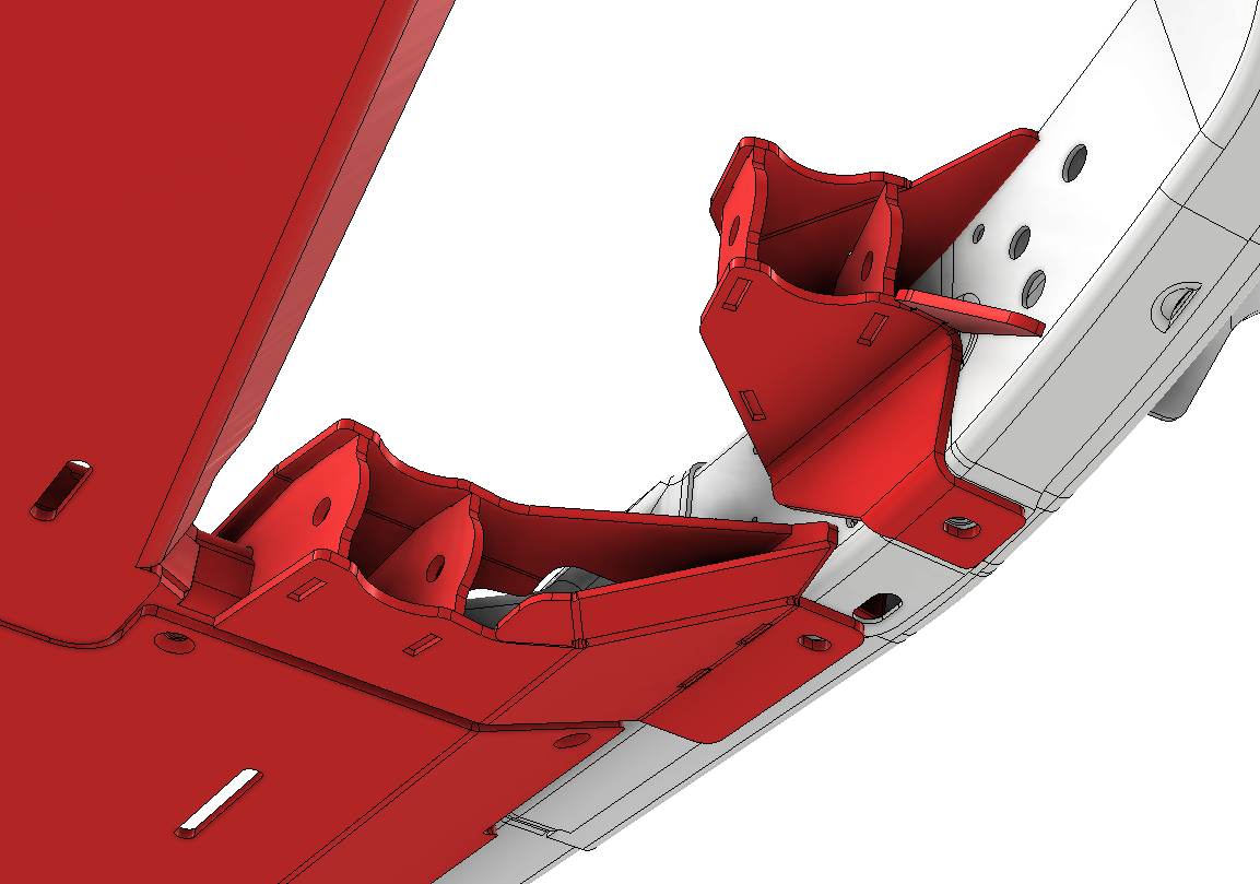 - Countersunk bolt heads in skid plates