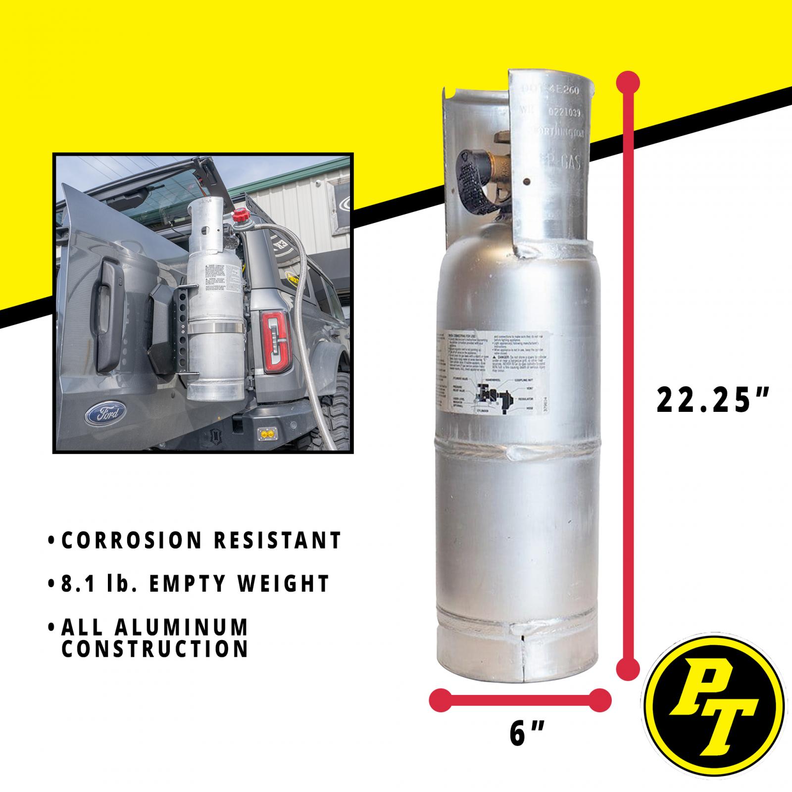 Securely mount and transport propane in the best way possible! This combo 6 lb aluminum propane tank and bracket is the lightest and most durable option you'll find anywhere. The 6 lb LP tank is narrow to fit in more spaces and the aluminum construction is lightweight and corrosion resistant.