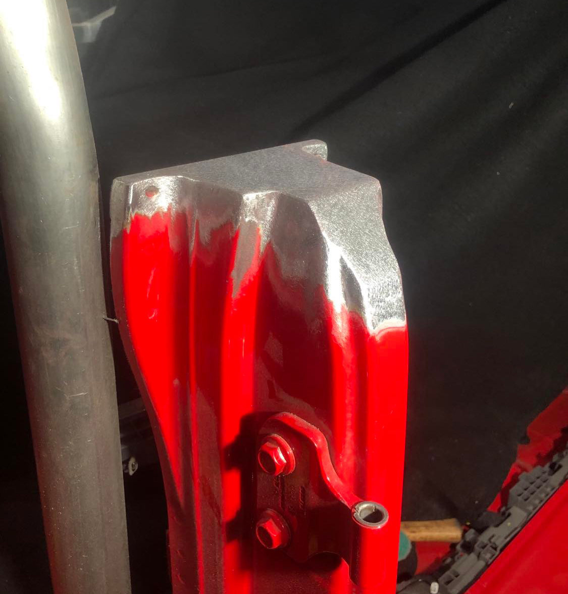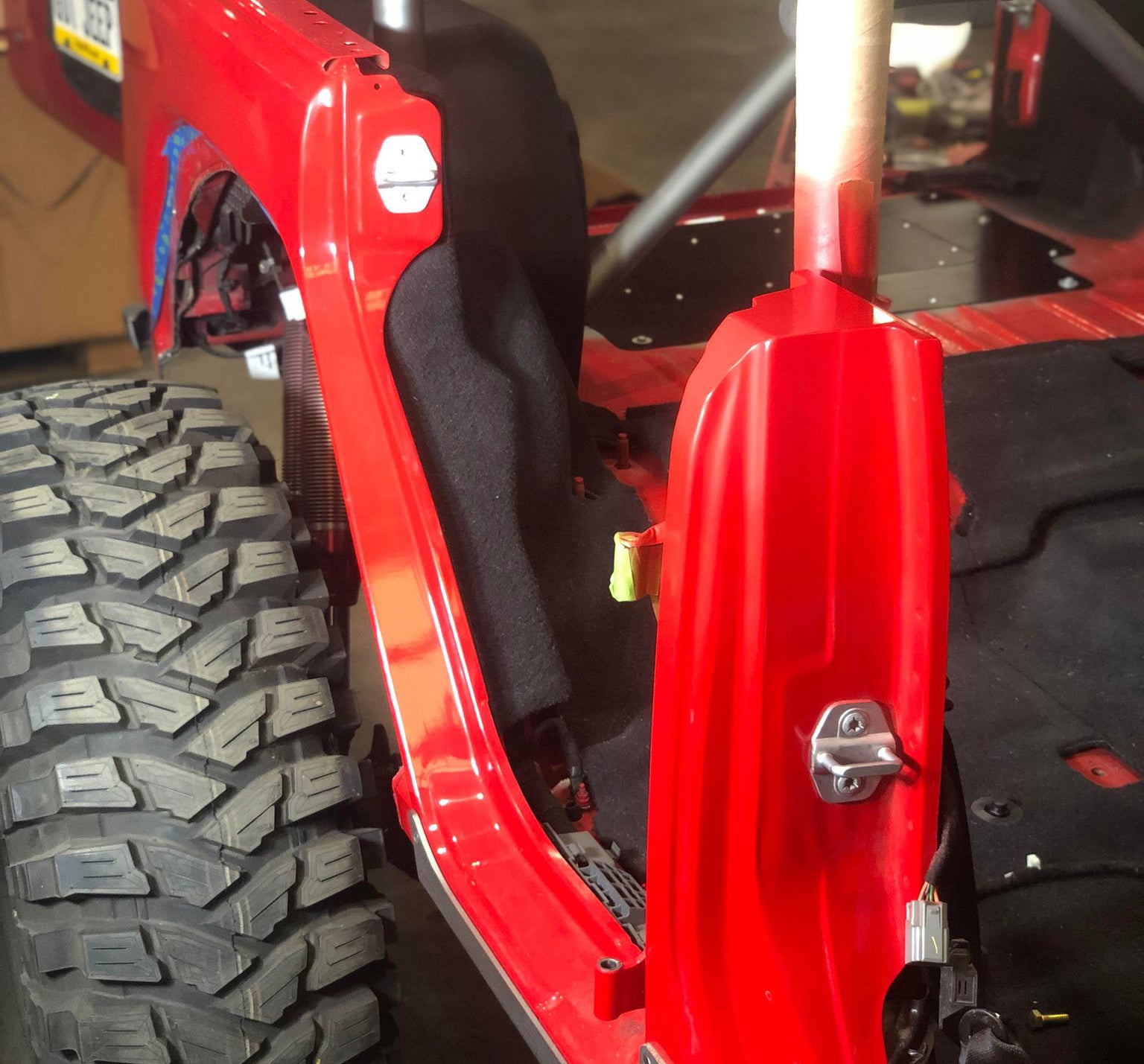 The upper portion of your B-Pillar will be modified to mechanically fasten to an aftermarket roll cage. The kit includes rivnuts and fasteners where you will drill into your aftermarket cage, install the provided rivnuts, which then provides you with the threaded mounting points for fastening the upper B-Pillars.