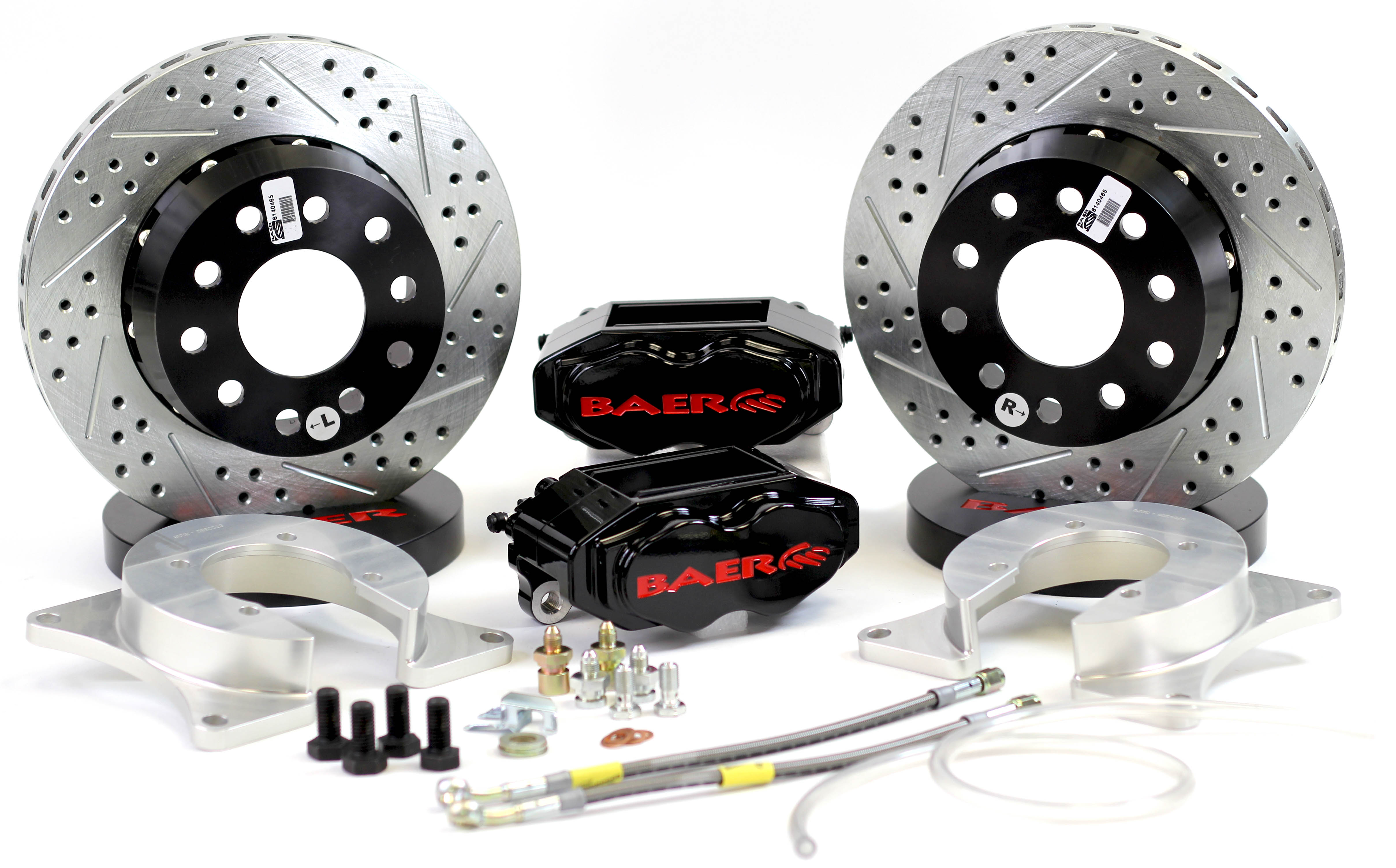 This rear system features the S4 4-piston caliper mounted to a 11 inch 2-piece slot, drill, zinc plated rotor. Baer systems include stainless steel brake hoses as well as calipers that have D.O.T. compliant dust and weather seals. NAS high grade stainless hardware for our pre-assembled 2-piece rotor. The SS4+ is designed just like Baers larger systems, but in a smaller package for 15 inch wheels. This system does NOT included a park brake assembly or park brake cables.