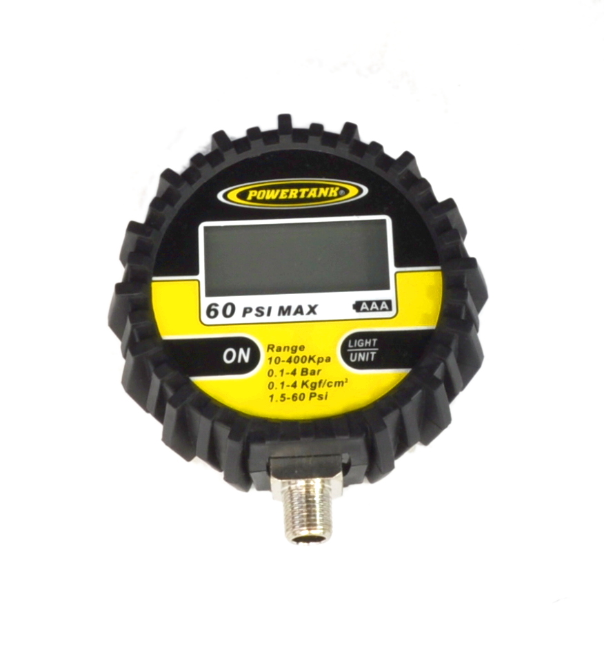 Digital Tire Inflator Gauge 60 PSI 2.5 Inch Diameter 1/8 NPT Threads Lower Power Tank