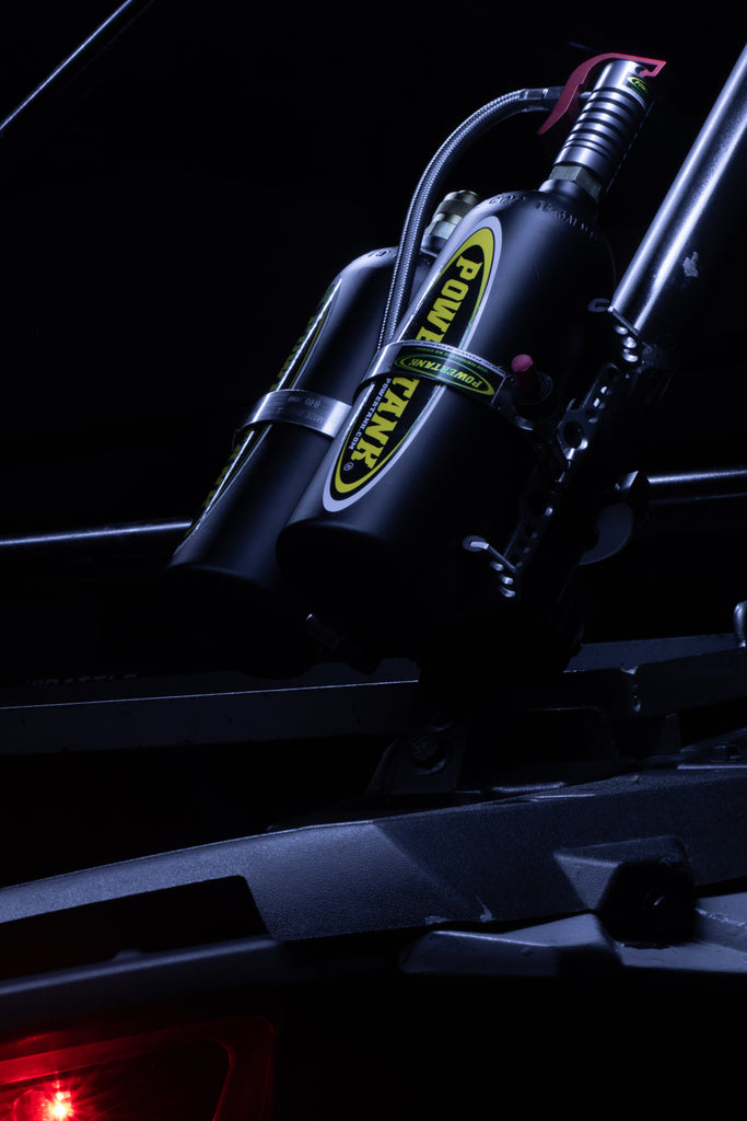 What you're looking at is Power Tank's Double Barrel Trigger System. This kit loads (2) 20 oz. Power Shot bottles onto your side by side, providing you with enough air for (14) 29 in. tires! It mounts both CO2 tanks on one bar freeing up space on your cage for other accessories and tools.
