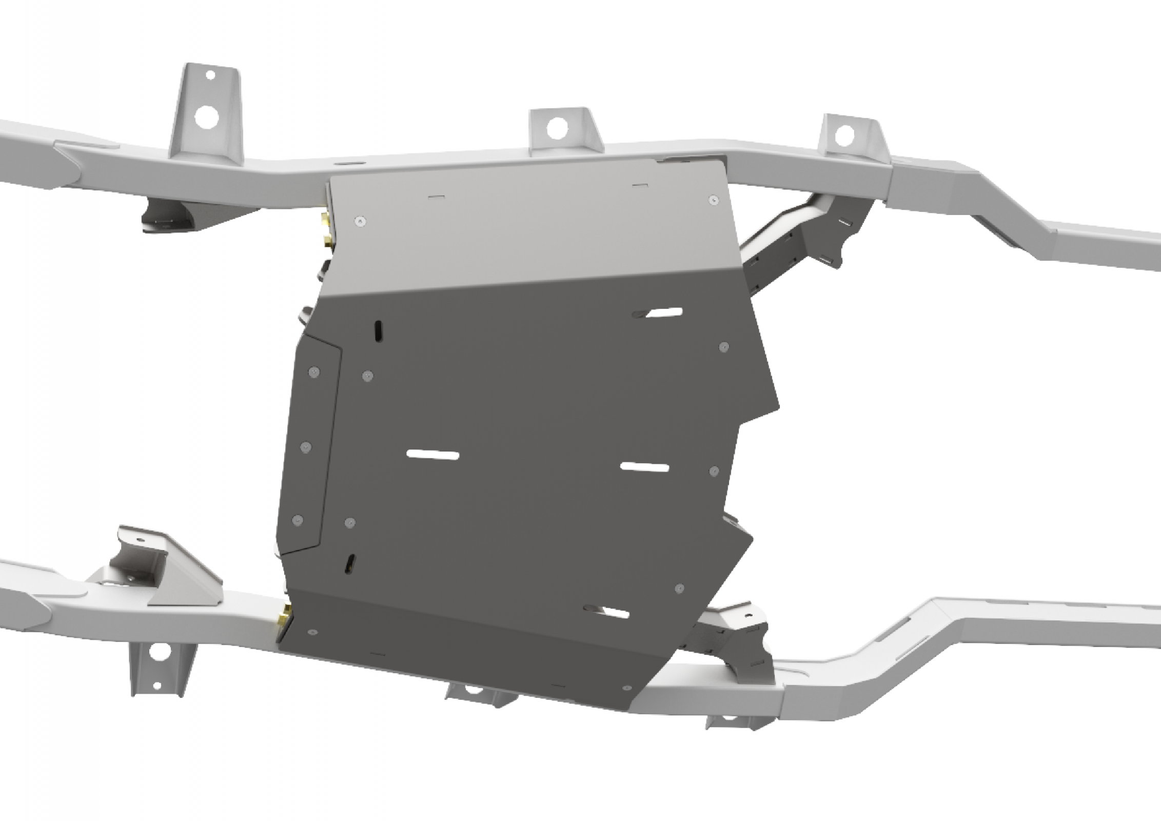 The removable one piece heavy duty steel skid plate is designed with precision fitment around the front and rear cross members. We have countersunk all fasteners for a true smooth bottom which provides no hang up points for traversing obstacles. The skid plate is quick and easy to remove for maintenance. The skid plate also features weep holes for drainage.