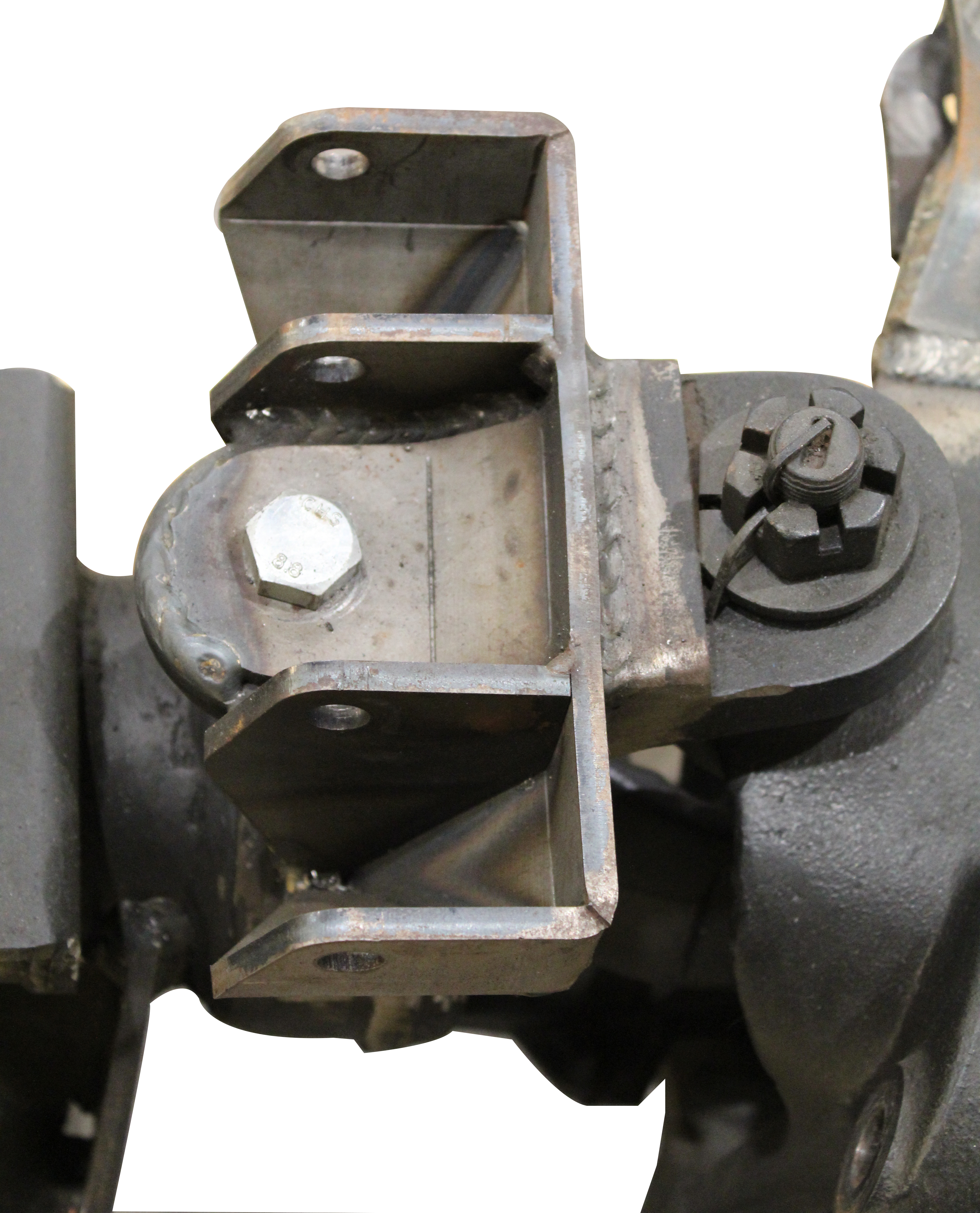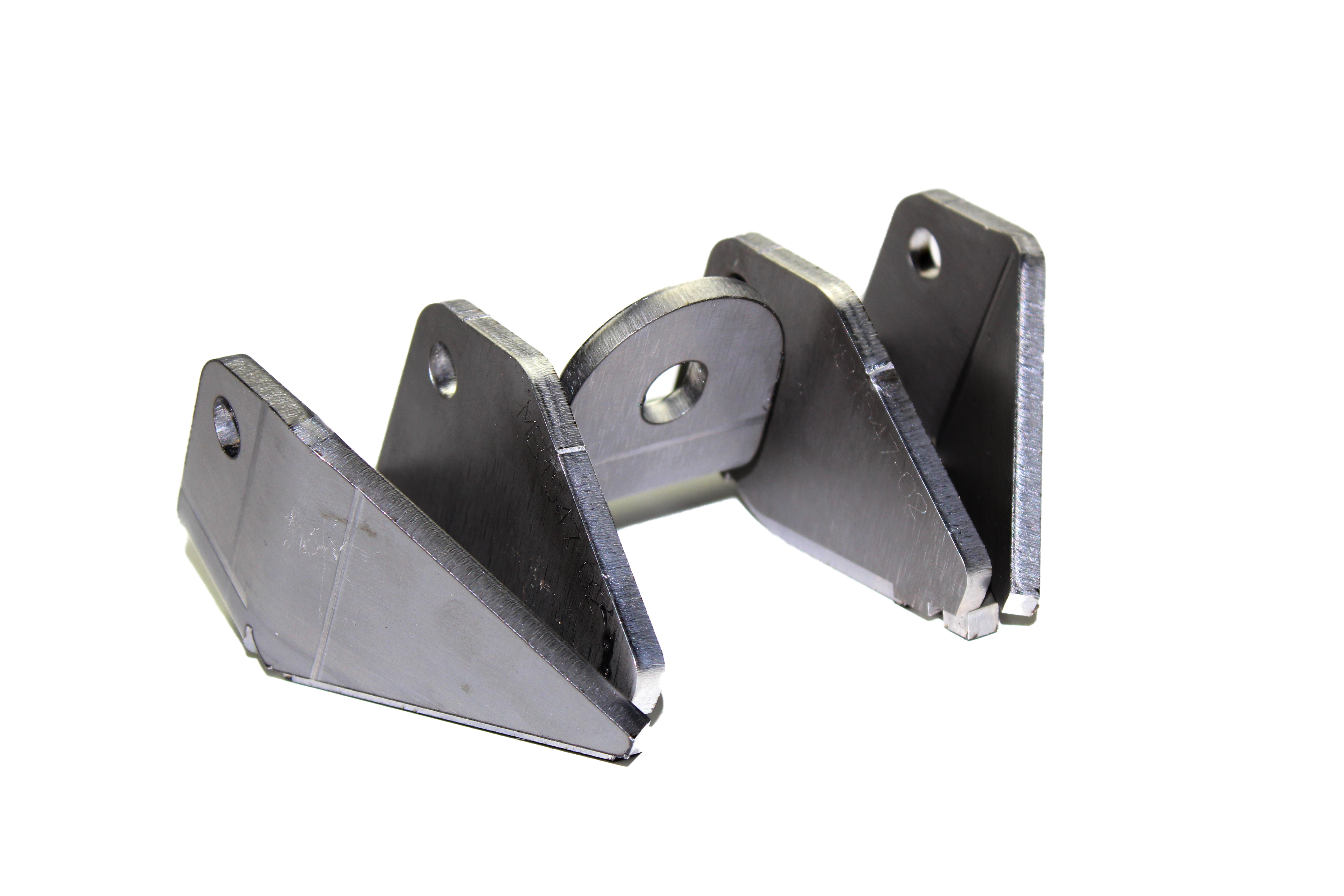 We have included a positioning slot in these brackets which align with a threaded hole in the Upper Cs on a late model Ford Super Duty front axle. Simply drop in a bolt (not included) to precisely position the lower shock mounts parts prior to welding them on to your Axles Inner Cs.