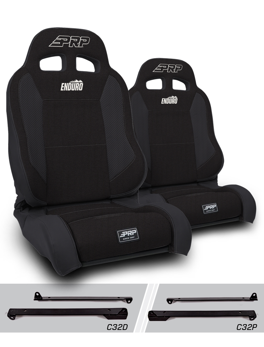 This kit comes with 2x EnduroTrek Seats, and the adapter mounts to fit into your Jeep Wrangler CJ7/YJ . The adapter mounts bolt to your OEM sliders, allowing you to install the seat while retaining the ability to slide back and forth. Seat Dimensions: 33 inch Tall x 22 inch Wide x 26 inch Deep
