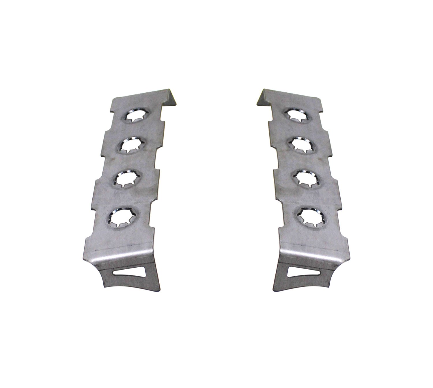 We offer grimple plates in a different forms in both flat and formed. This Grimple Plate is formed on both ends and is specifically designed to be mounted against a flat surface like a rocker guard and extend out to 1.75 inch OD round tube.
