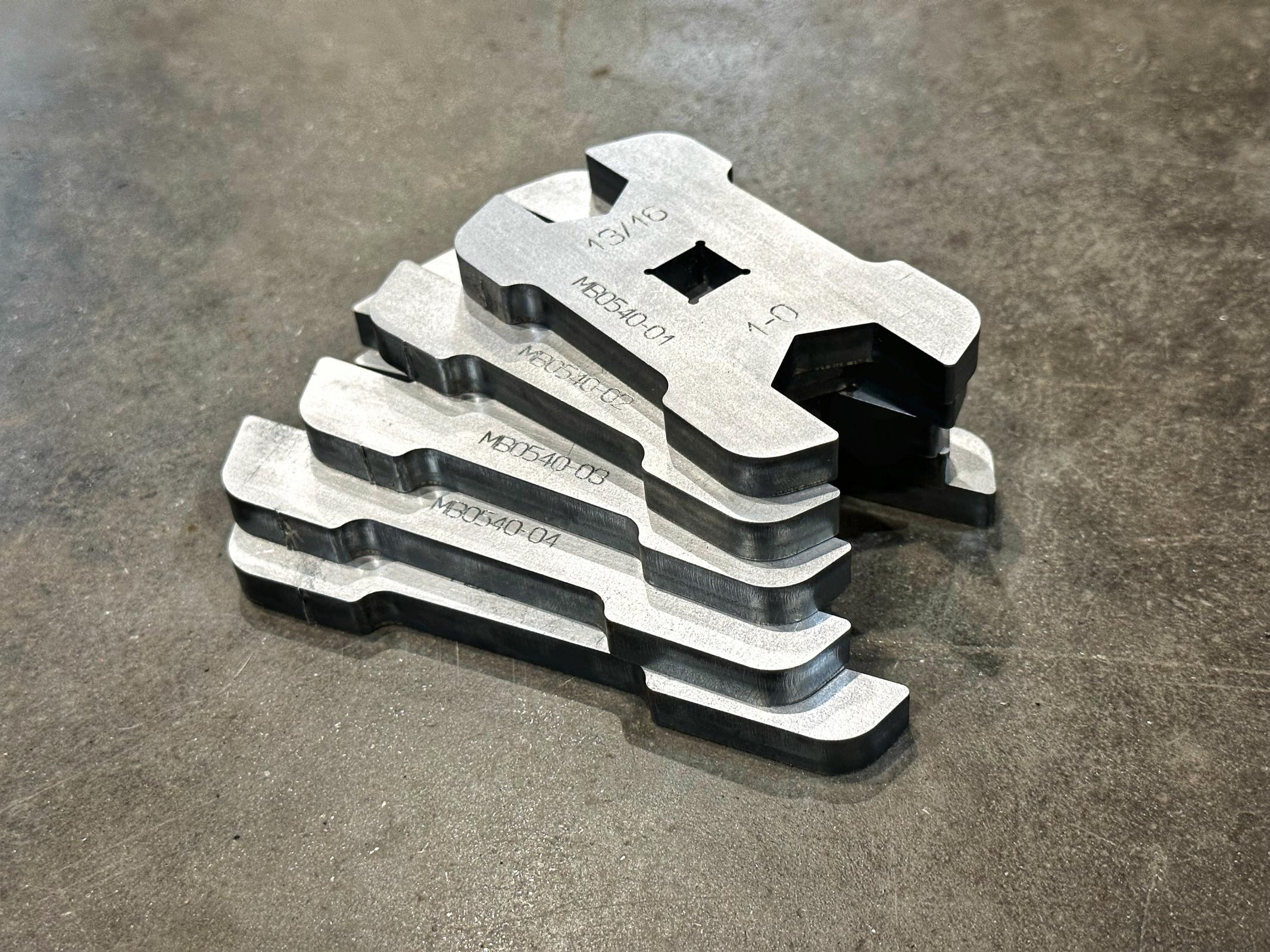 The jam nut wrenches are laser cut here in the USA at Motobilt from 3/8 inch thick heavy duty steel plate. The jam nut wrenches are sold as a set of 5 and ship to you bare steel.