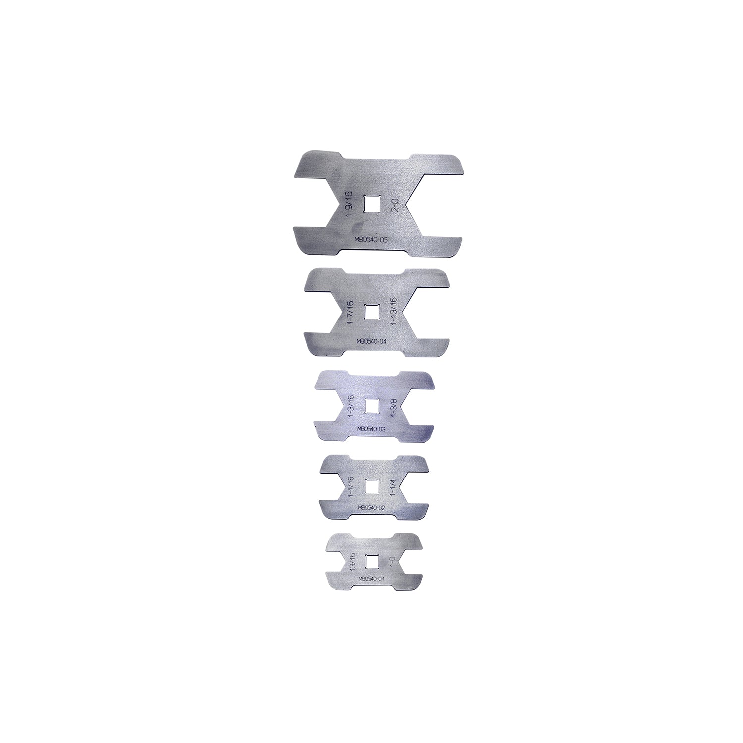 Like you, we have needed to tighten jam nuts both in the shop and while out off-roading and sometimes scramble to find a large enough wrench. We designed and made a compact set of 10 jam nut wrench sizes consolidated down to 5 simple tools.