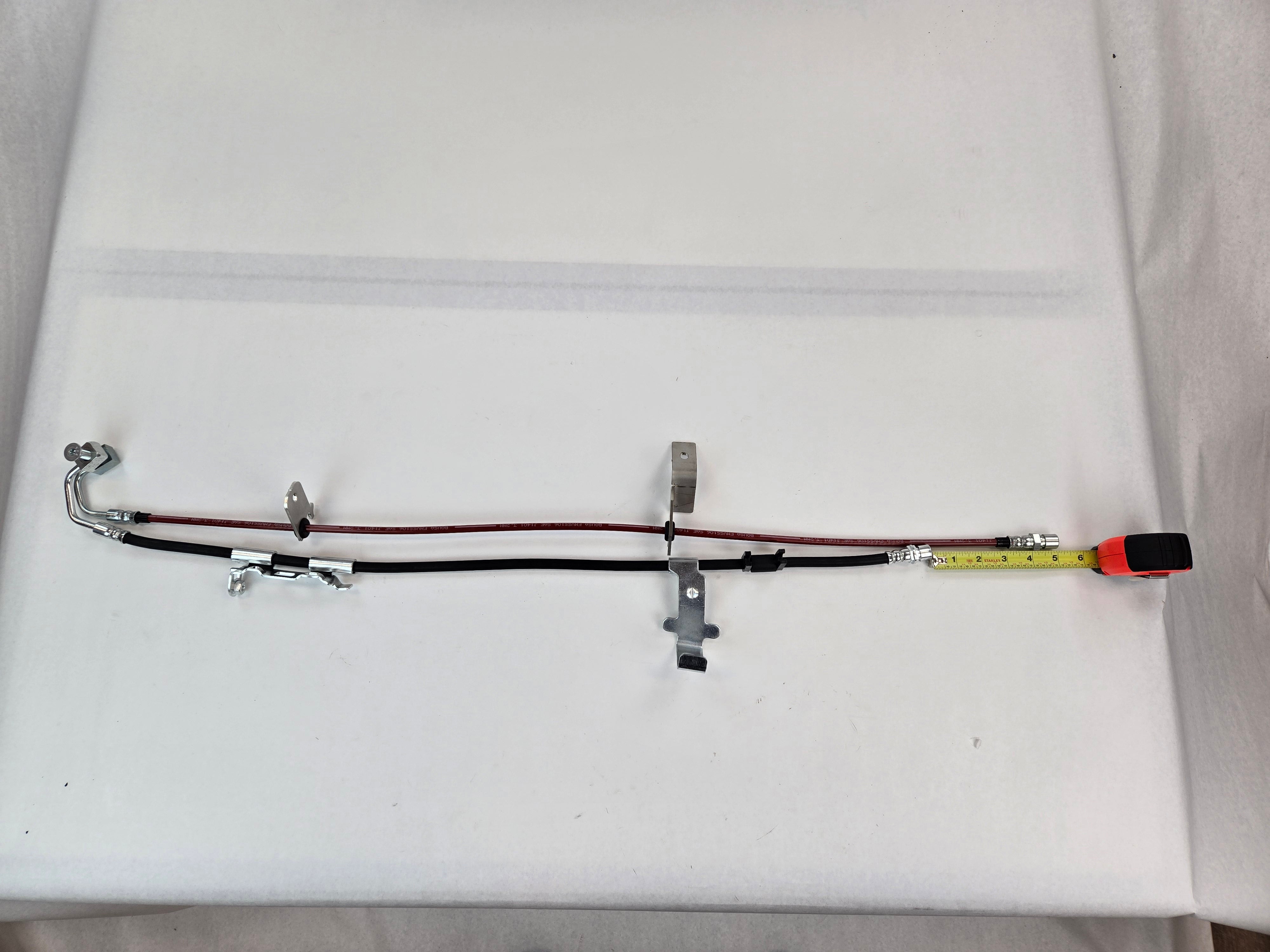 - Approximately 5" longer than stock, use OE style caliper and frame fittings and include stainless steel brackets to securely route your new lines.