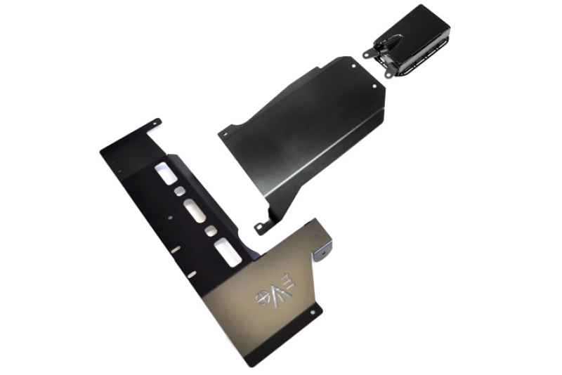 Package Includes: EVO-1091B EVO 2012 and Up JK ProTek Oil Pan Skid 1/4 inch Steel Skid Fully boxed for protection on all sides 100 percent Bolt on with Factory Hardware Accessible oil drain without removing skid. Fits both manual and automatic transmission Powdercoated for clean finish and corrosion protection EVO-1092B EVO 2012-15 JK ProTek Automatic Transmission. Skid Features: 3/16 inch Steel Skid 100 percent Bolt On All Hardware Included Powdercoated Black for clean finish and corrosion prevention EVO- 1093B EVO MFG TransCross-member Exhaust Skid 2007-2015, Black 3/16 inch Steel Skid Protects Exhaust Crossover and the exhaust loop on 2012 JKs, Protects the expensive to replace factory transmission cross-member, 100 percent Bolt On with factory and supplied hardware. Works on both Manual and Automatic JKs Powdercoated Black.