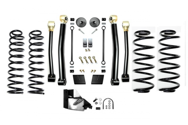 These kits come with a set of 4.5 Inch lift springs specific to each corner which will keep the Jeep Wrangler JL more level side to side. EVO MFG JL Enforcer kits are available in multiple configurations to suit your needs and budget and are upgradable down the road. The EVO MFG 4.5 Inch JL Enforcer Kits are easy to install using normal tools. No drilling or cutting (optional rear shock extensions require one minor drill). They require no driveshaft or exhaust modifications (your shock choice may require this, contact manufacturer to be sure). Simple Bolt on installation.
