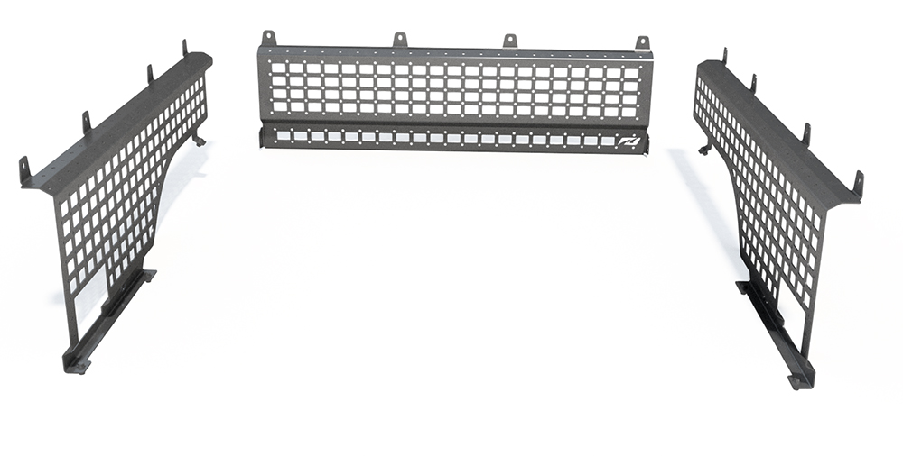 Constructed from 11 Ga (0.120) high grade steel that is laser cut and precision CNC press brake formed, our MOLLE bed rack system can be quickly installed to the bed of any model of Jeep Gladiator, with or without the Jeep Gladiator's Trail Rail System.