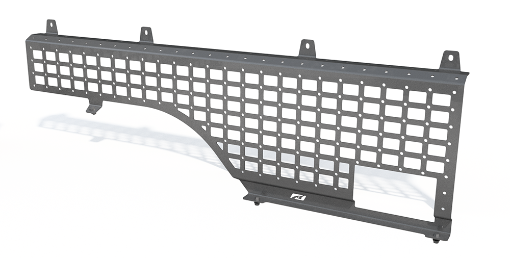 Our MOLLE rectangular slot pattern is designed to securely fasten nearly any type of aftermarket MOLLE compatible product. Our rack system also includes hundreds of mounting holes to quickly bolt-on our new line of rack compatible accessories.