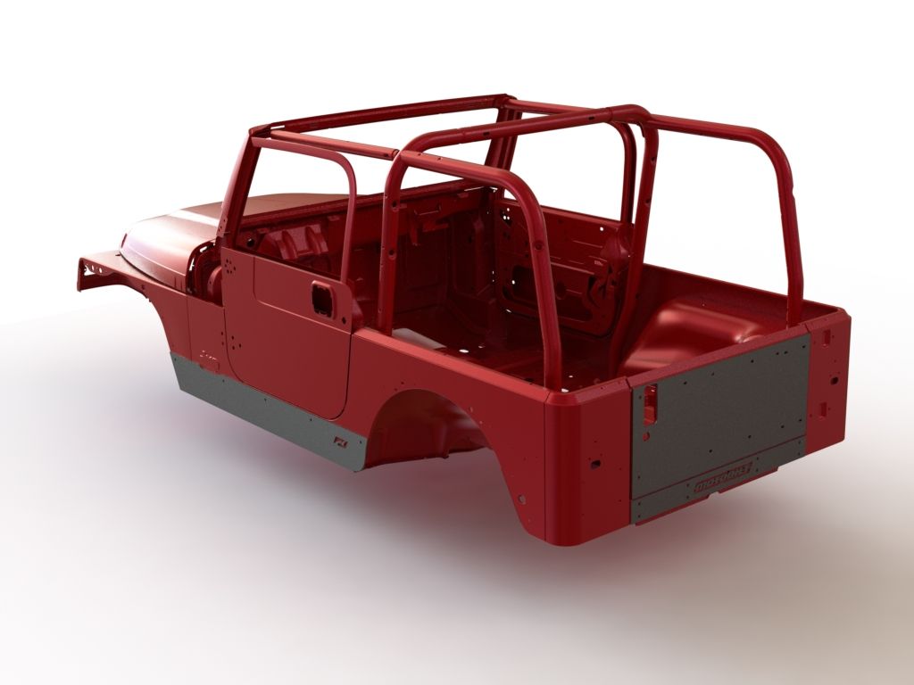 The Motobilt Jeep TJ full length rocker guards made in the USA extend from the front fender all the way to the rear wheel well opening.are in-house laser cut from 3/16 inch high strength steel.Our rocker guards are formed so that they wrap under neath the body of your jeep and tie into the factory body mounts. This setup allows for use with the Motobilt Jeep TJ factory cut corners. (MB1055) We also slot the lower portion of the rocker guards to make it easy to clean out your rockers after a hard day of wheeling.
