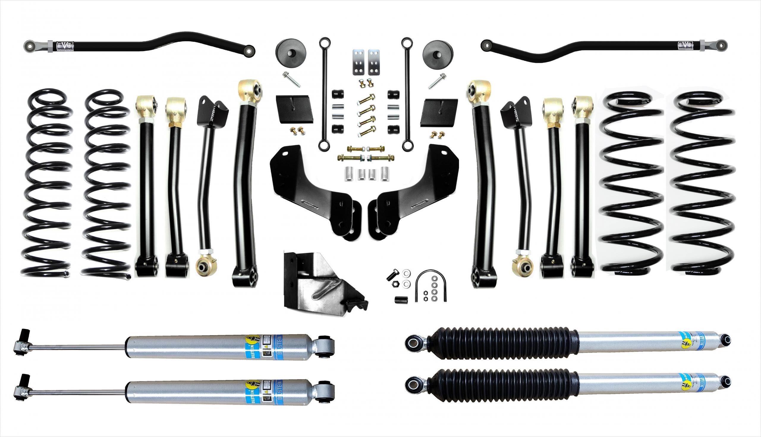The JL Enforcer kits are specifically designed to lift your JL and maintain a performance spring rate, smooth ride quality while having the option of retaining factory shocks, maintaining wheel travel with use of shock extensions (part number EXT kits) or without shock extensions to allow for use of your choice of aftermarket 3-4 inch lift shocks or use of our EVO SPEC 2.5 inch Remote Reservoir King Shocks.