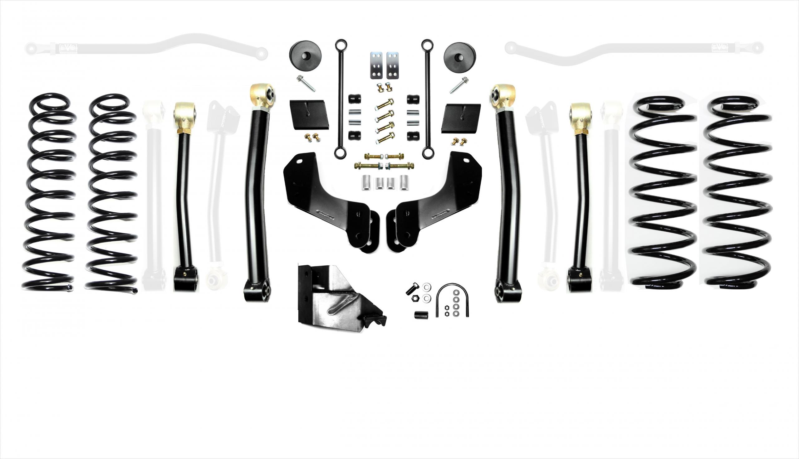 - Stage 2 kits includes stage 1 components as well as EVO MFG Enforcer JL Front Lower Adjustable Control Arms to allow for caster adjustments.
