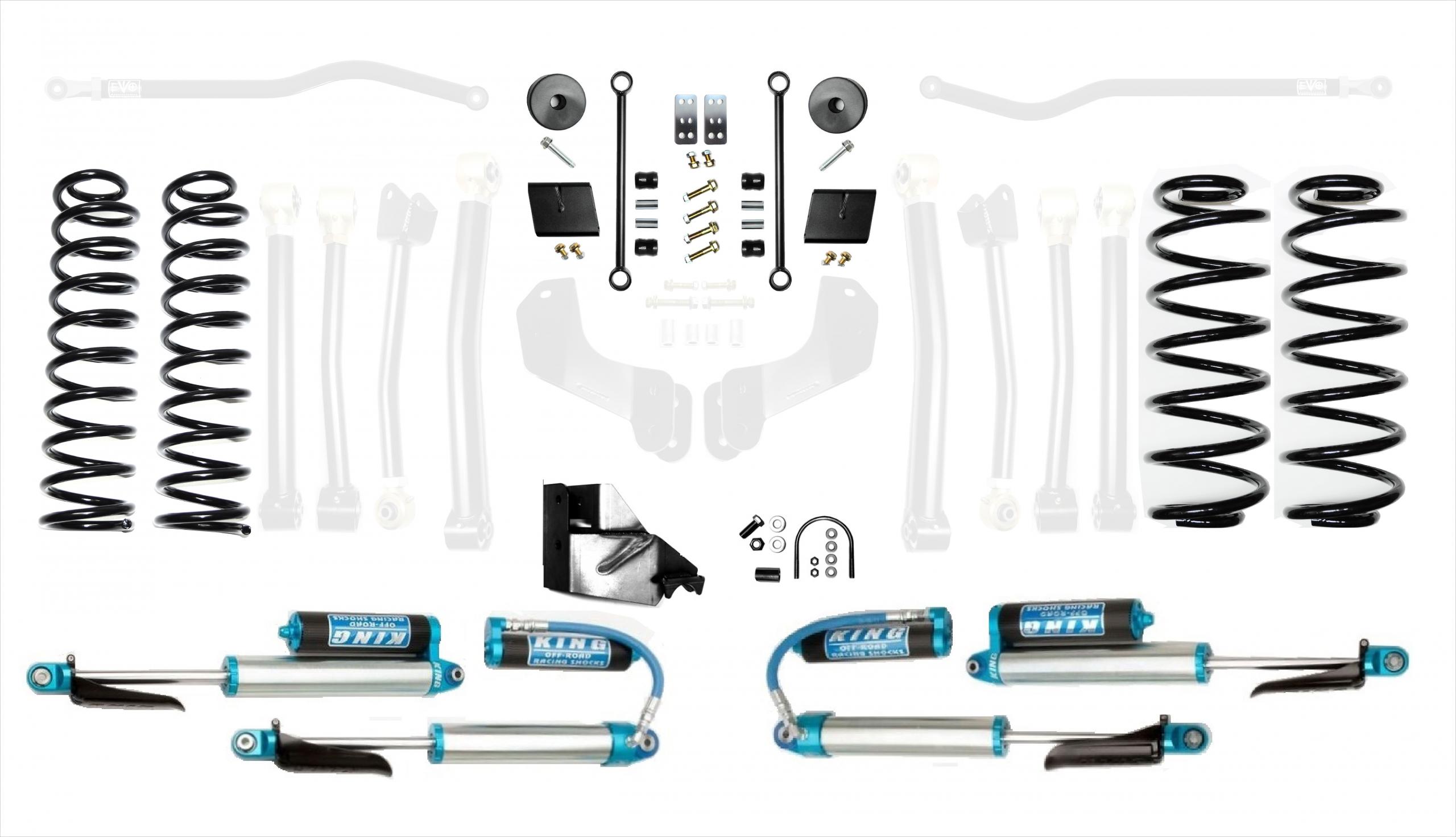 - Jeep Wrangler JLU Diesel 2.5 Inch High Clearance Long Arm w/EVO SPEC King 2.5 Inch Shocks