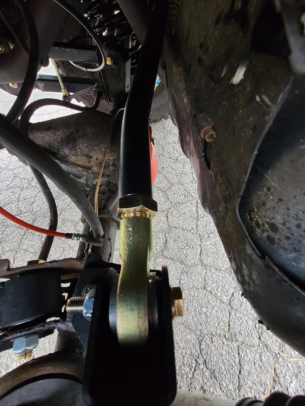 Our TJ/LJ adjustable rear track bar, part # COR-4500210 will allow angle adjustment if necessary and also ability to dial in your exact rear track bar length.