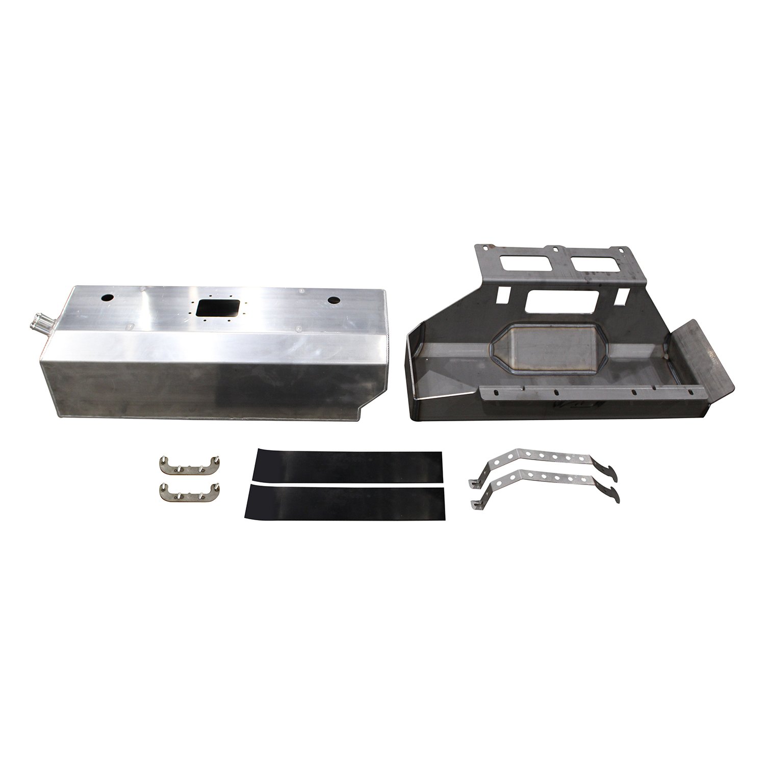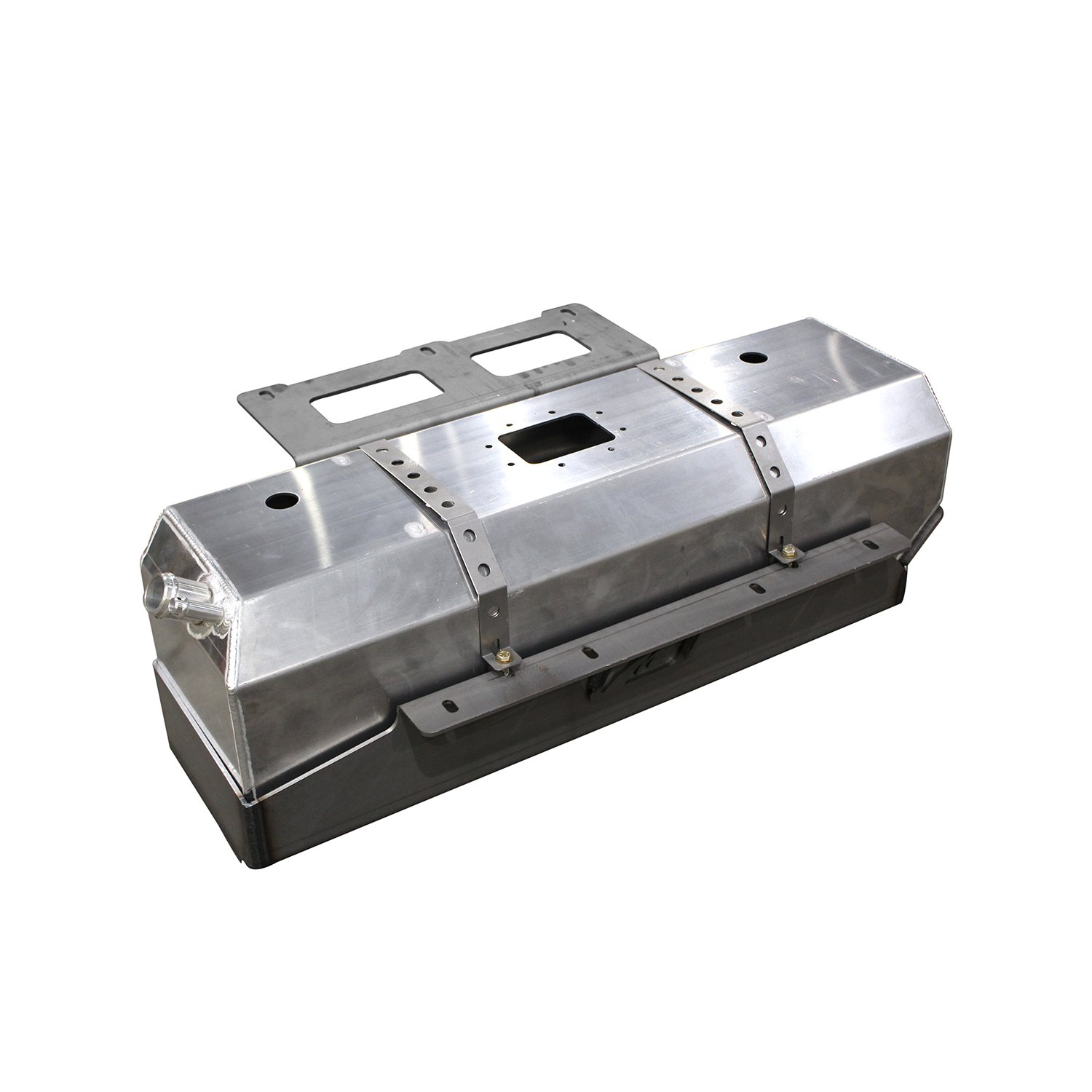 The Motobilt YJ Stretch Tank is 3D CAD designed to ensure a perfect fit every time. The tank is laser cut and formed from high quality 11GA (1/8 inch thick) aluminum and then formed on a CNC press brake here in house at Motobilt. We then TIG weld the tank completely on all seams.