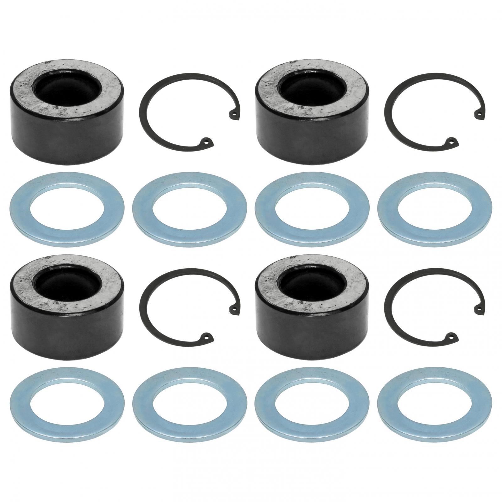 This Johnny Joint Internal Kit Pack for use in any narrow width (1.69 in. wide) 2 1/2 in. Johnny Joint outer bodies includes 4 sets of: 1 urethane bushing, 2 bushing side retaining washers and 1 snap ring to retain the internals into the Johnny Joint body.