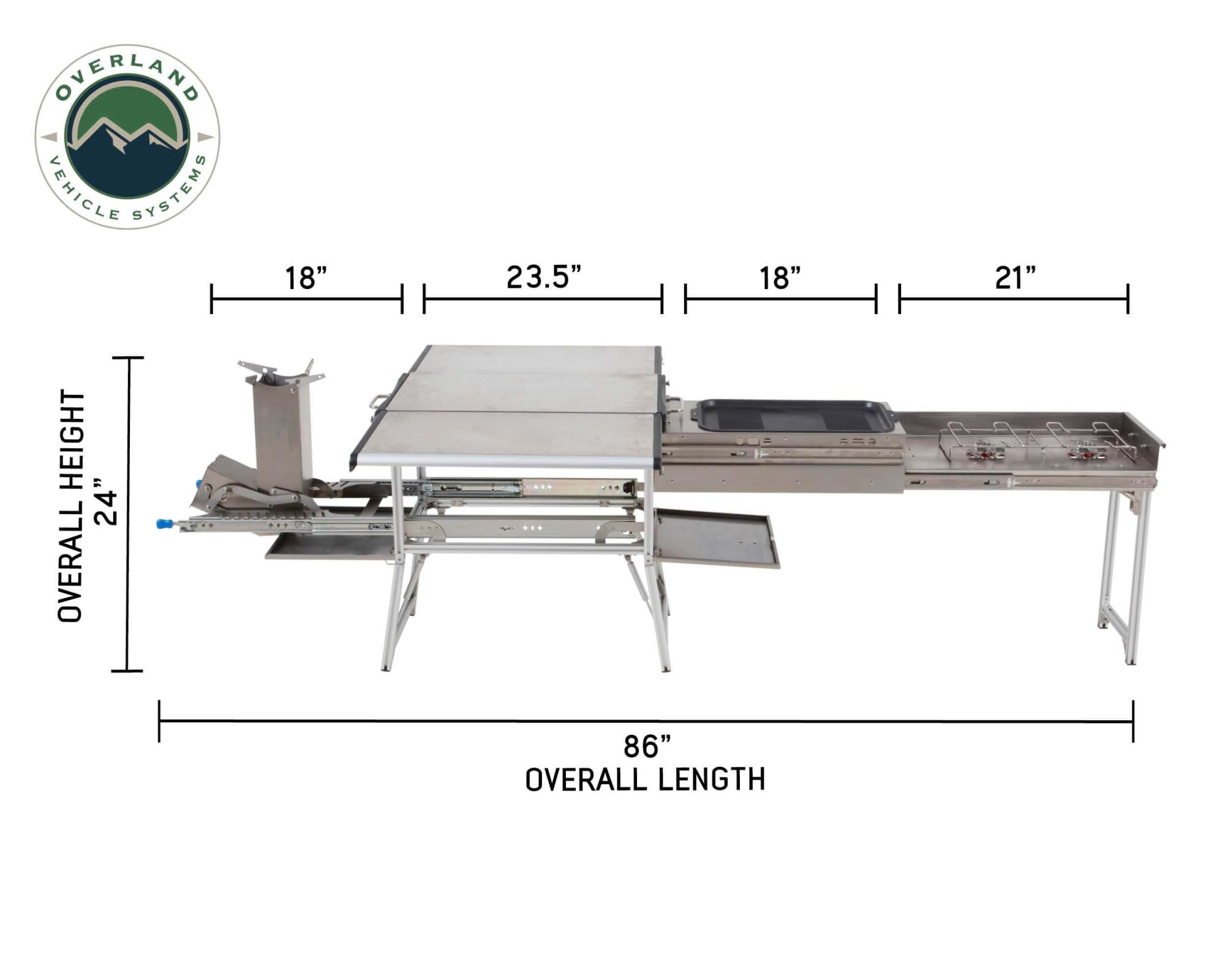 The Overland Vehicle Systems Komodo Portable Camp Kitchen is the perfect option for anyone looking for a durable, lightweight kitchen that is easy to transport. Made with aircraft-grade aluminum and stainless steel, this kitchen is tough enough for any outdoor adventure.