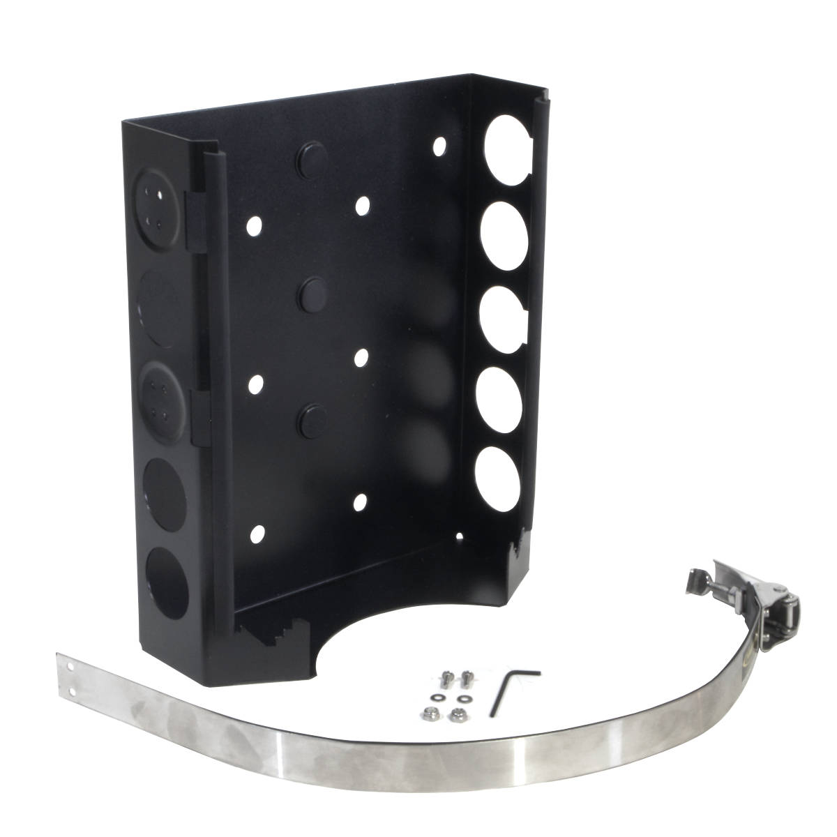 TIG welds support the base to the side walls for rigid support. Carry your propane on the roughest seas or washboard trails with this well-engineered bracket. The optional ABC roll bar clamps (ABC-2460, ABC-2465) make mounting easy.