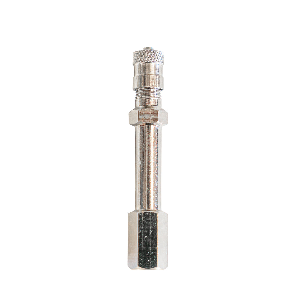 For recessed or hard to reach valve stems on your wheels or shocks, use this handy Schrader valve extension. This screws on to any Schrader valve and adds two inches in length. Fits a 10 mm wrench and measures 14.5 mm at the widest point.