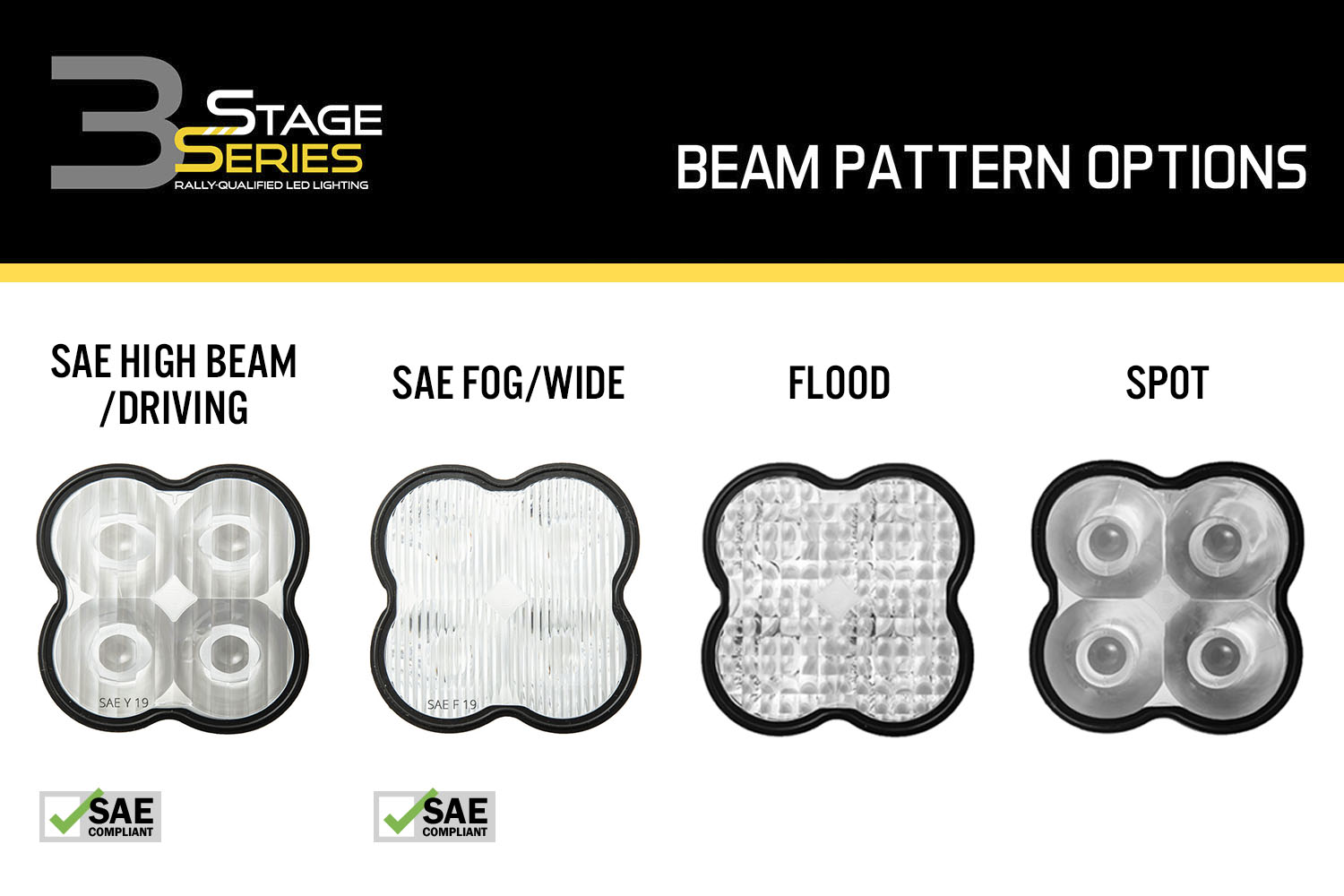 Driving is designed to supplement your high beams, but itРІР‚в„ўs great for general illumination as well. Rather than a traditional spot pattern, the Stage Series Driving pattern shines in an 18x8 degree spread, providing just enough width to fully illuminate the road ahead at high speeds. Please note that yellow Driving is not an SAE compliant pattern, as road-legal Driving lights must be white in color.