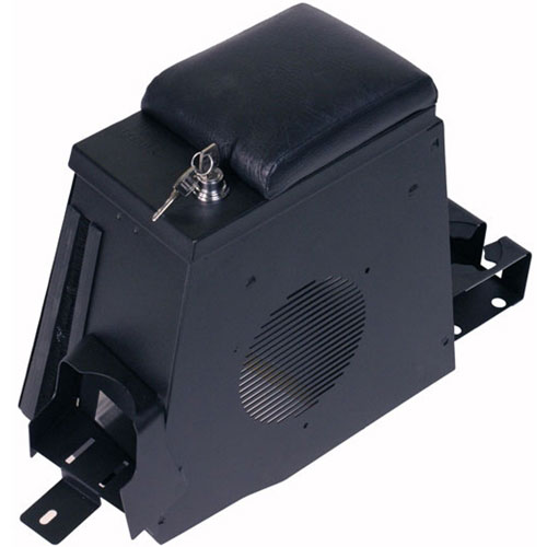 This steel console is specifically designed for use in the Jeep Wrangler TJ with the full factory console and factory sub-woofer. This console is designed to protect the expensive OEM sub-woofer and provide lockable storage for other valuables. The new sleek, custom fit design matches the TJ's refined interior and offers 2 1/2 times more storage than the factory console. An aftermarket speaker can be installed behind the 6 1/2 inch grill. Includes two oversized rear drink holders. Does not include front shifter console.