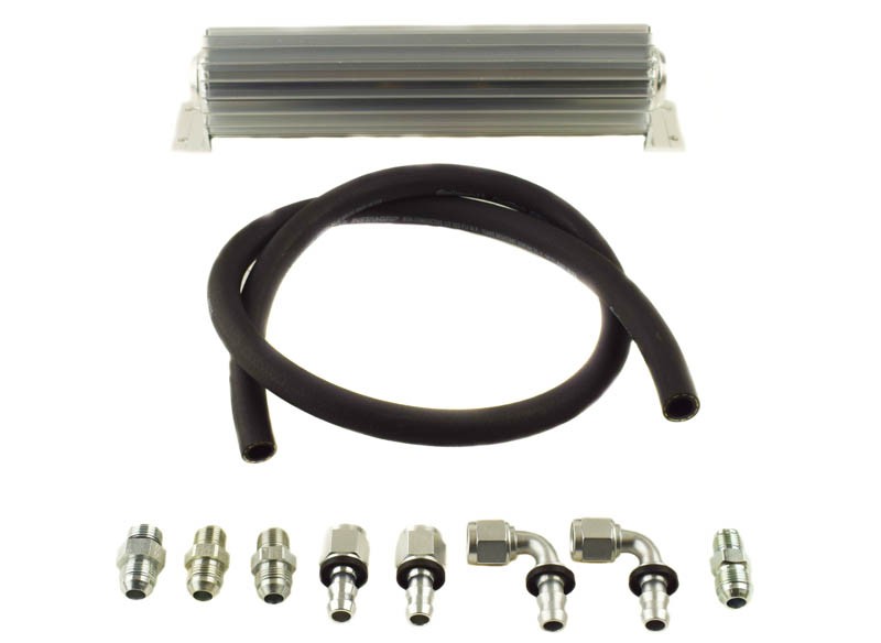 Improve the power steering system flow rate and reign in fluid temperatures with an upgraded 8 Return Line and PSC 16 Inch Heat SInk Fluid Cooler Kit. Install this kit in conjunction with the PSC HK2091 -8AN High Pressure Hose Assembly for maximum power steering system efficiency. PSC Heat Sink fluid coolers are manufactured with both internal and external cooling fins which provide maximum cooling efficiency without relying on direct airflow.